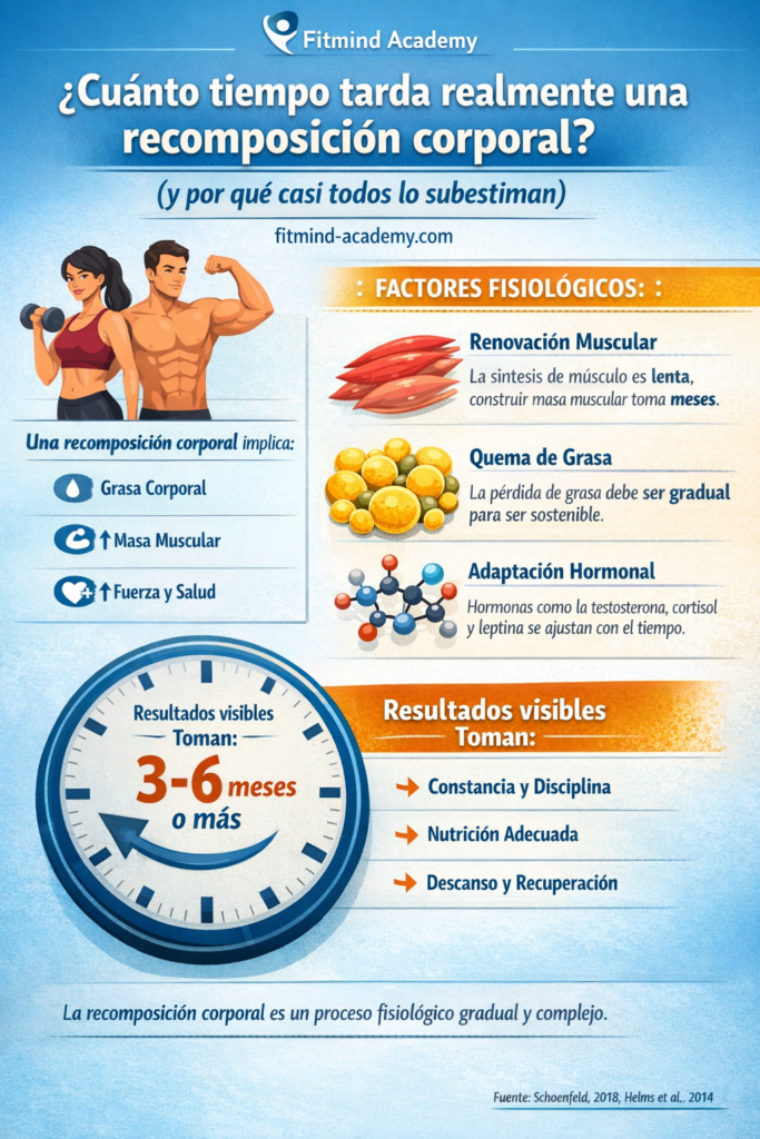 Cuando alguien busca recomposición corporal cuánto tarda, en realidad no quiere solo un número. Quiere saber si es posible cambiar su físico sin hacer dietas extremas, cuánto tiempo tomará ver resultados reales y si lo que está haciendo actualmente le está acercando o alejando de ese objetivo.